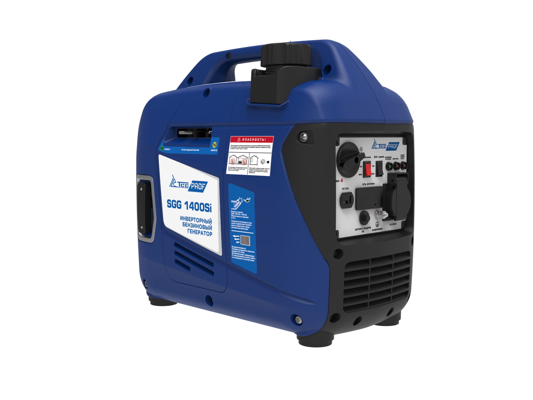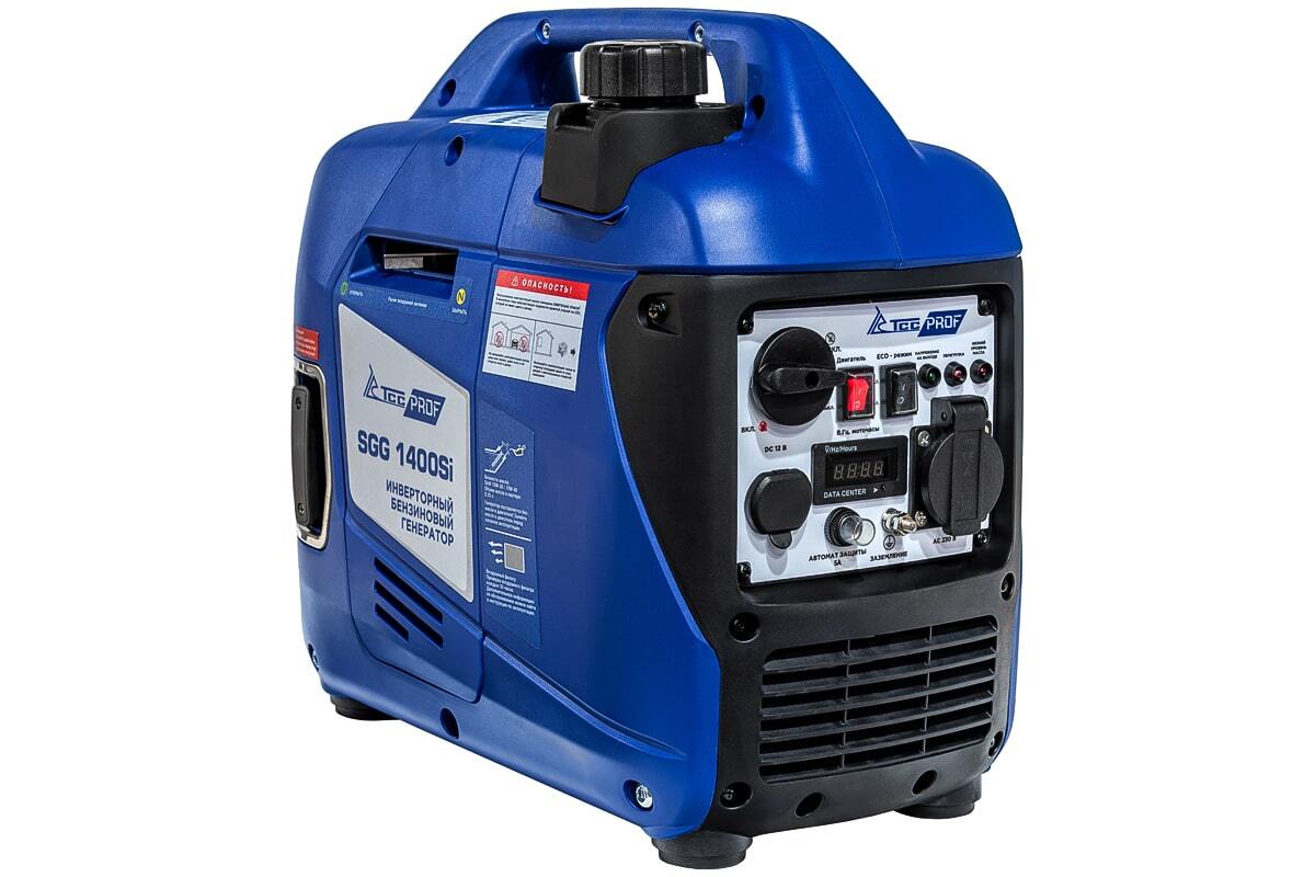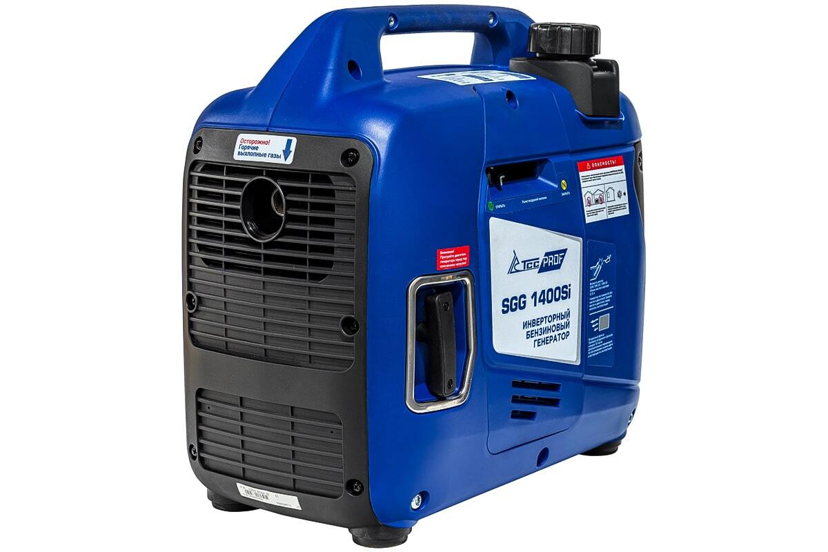 Бензогенератор инверторный SGG 1400Si в шумопоглощающем кожухе, номинальной мощностью 1,2 кВт. Переносной компактный инверторный генератор предназначен для питания маломощных электроприборов на загородном участке, в походе, на рыбалке.