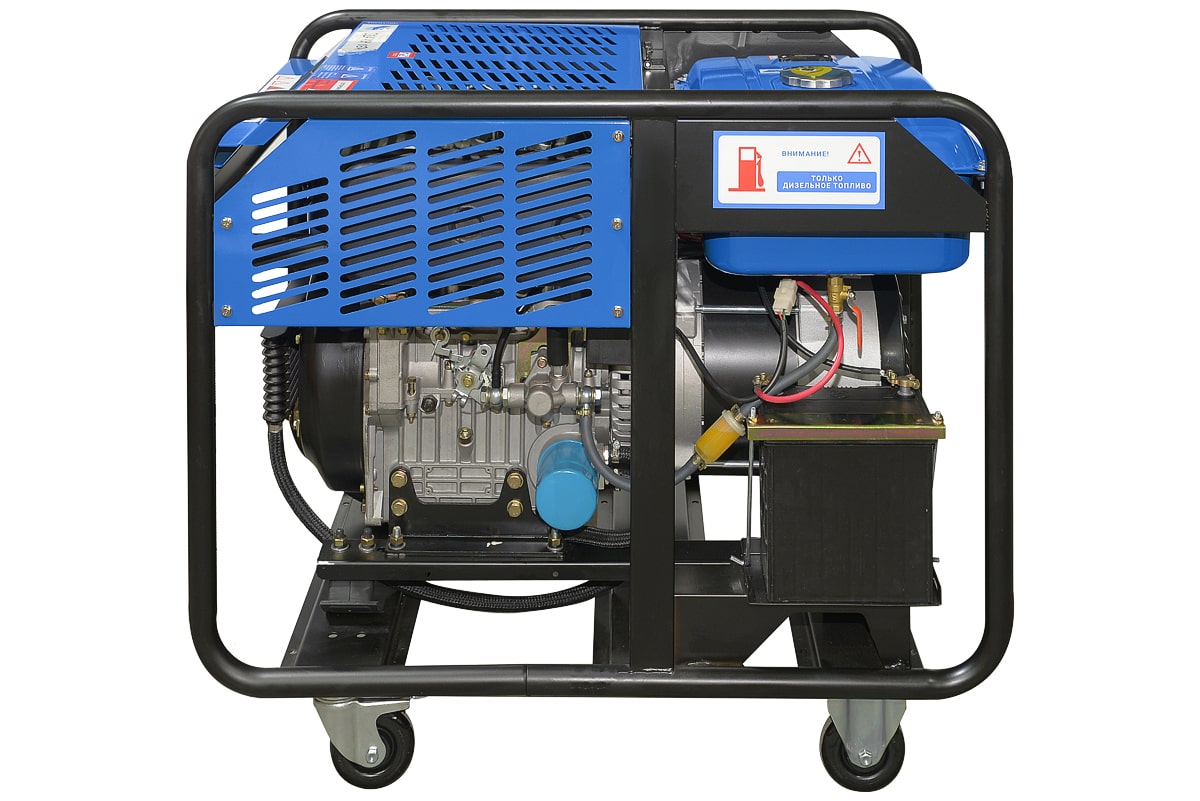 Дизель генератор TSS SDG 10000EHA с надежным и экономичным двигателем, электростартером и разъемом для подключения блока АВР. Для удобства передвижения оснащенный колесным комплектом.
