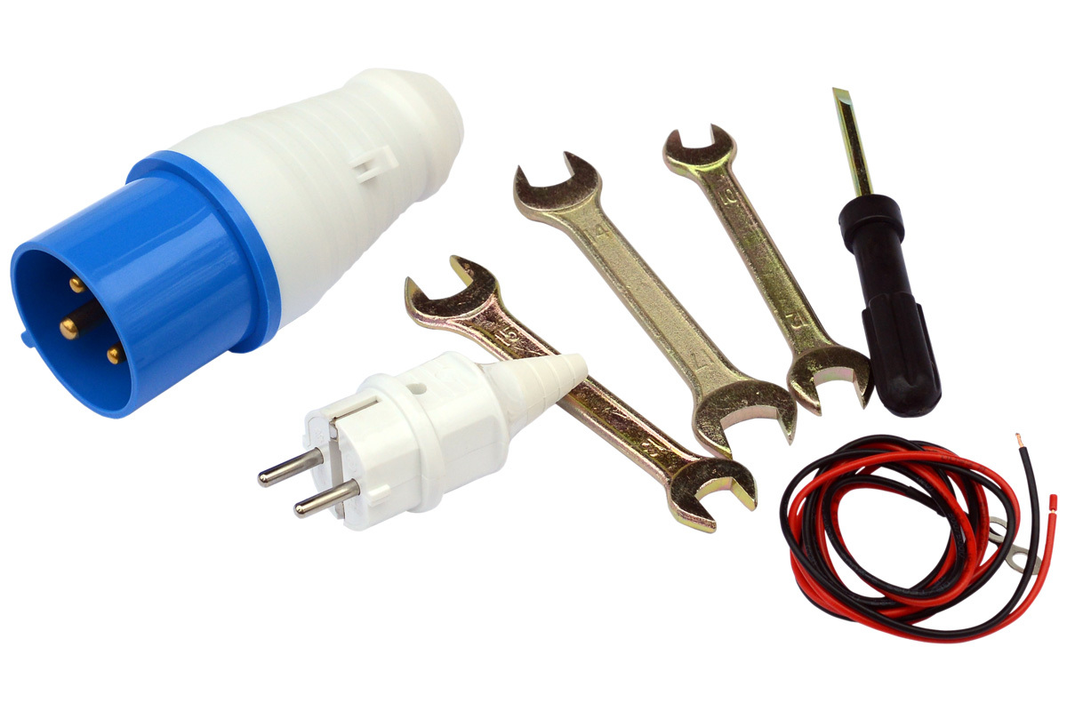 Электрическая вилка, разъем для АВР, комплект проводов, колёса