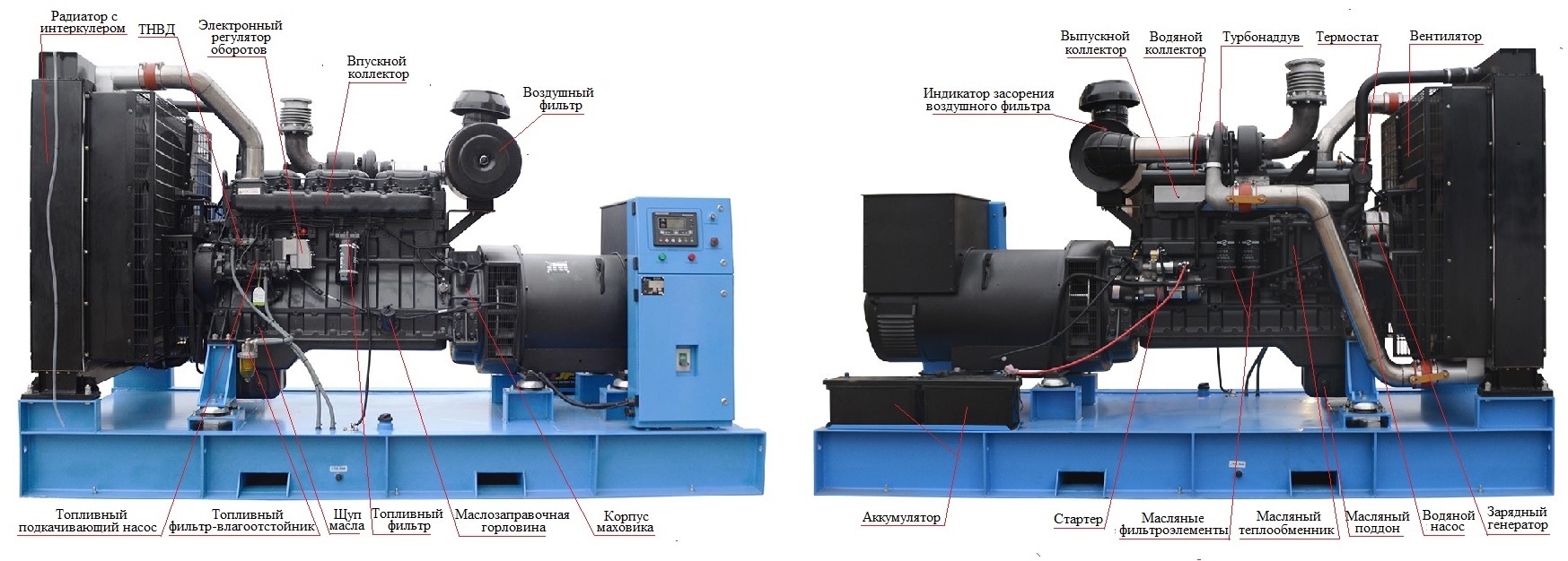 глушитель, топливный бак, АКБ, ЩУ с цифровой панелью, станция запр. маслом и ОЖ,