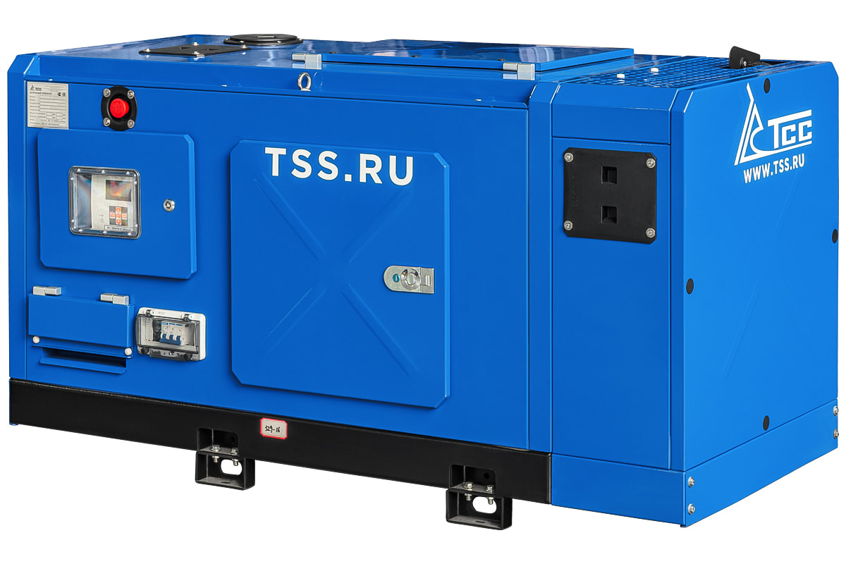 Дизельный генератор ТСС АД-12С-Т400-1РКМ32 в шумозащитном кожухе номинальной мощностью 12кВт, напряжением 380 В, предназначен для использования в качестве основного или резервного источника электроэнергии.