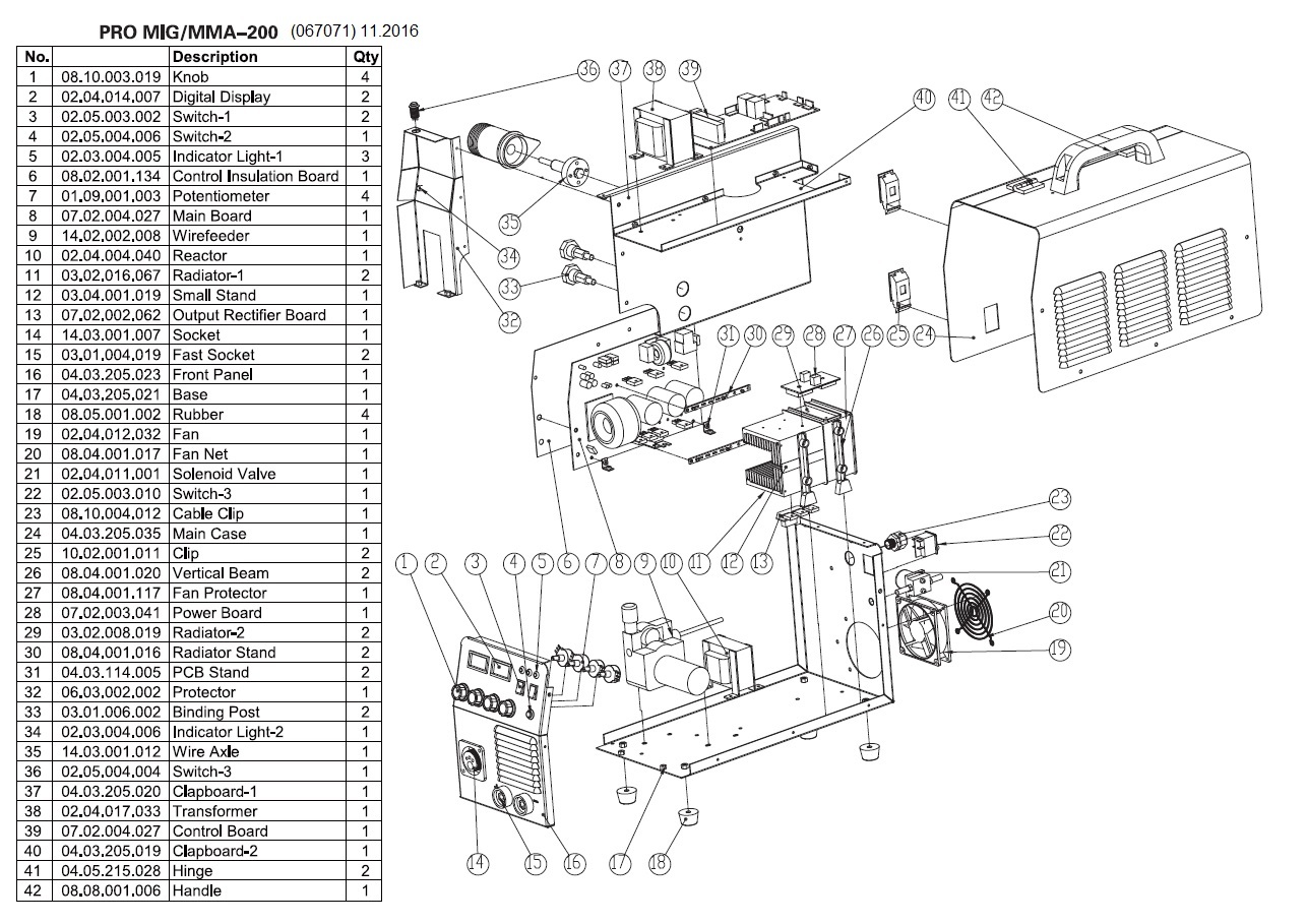 Комплект кабелей, Горелка, Сопло, Наконечник, Маска, Щетка, Инструкция.