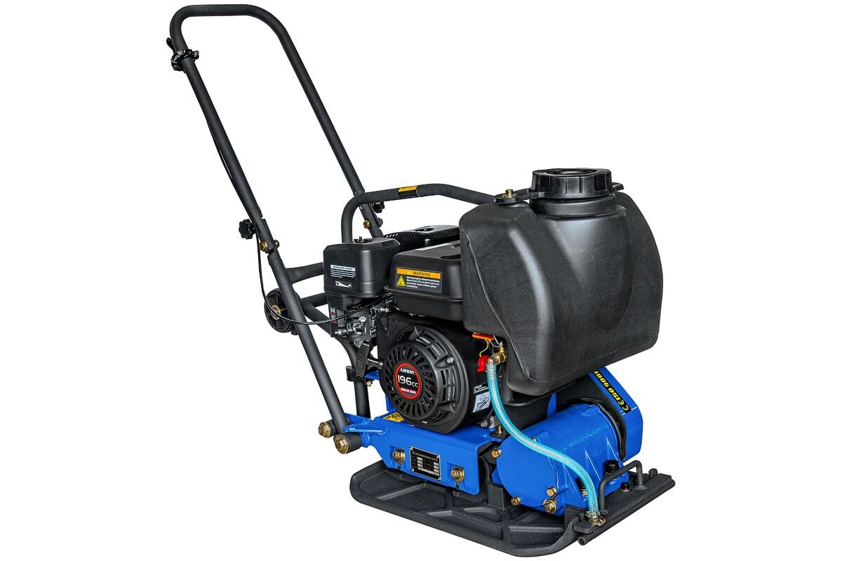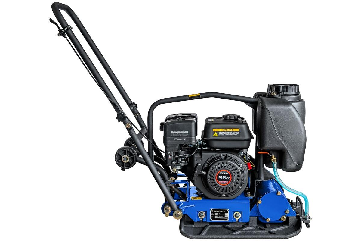 Система подачи воды на плите позволяет работать с влажными материалами, что увеличивает производительность и качество работы. Максимальная глубина уплотнения составляет 200 мм, что делает эту виброплиту идеальной для работы с различными типами грунта.